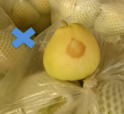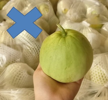 – Quả dưa bị trám nắng: Những quả dưa lê bị trám nắng thường chỗ bị trám sẽ xốp và nhạt hơn những vị trí khác trên thân quả dưa. Vì vậy nếu quả dưa đó bị trám nắng nhiều thì không nên mua vì cả khoảng bị trám đều rất nhạt.